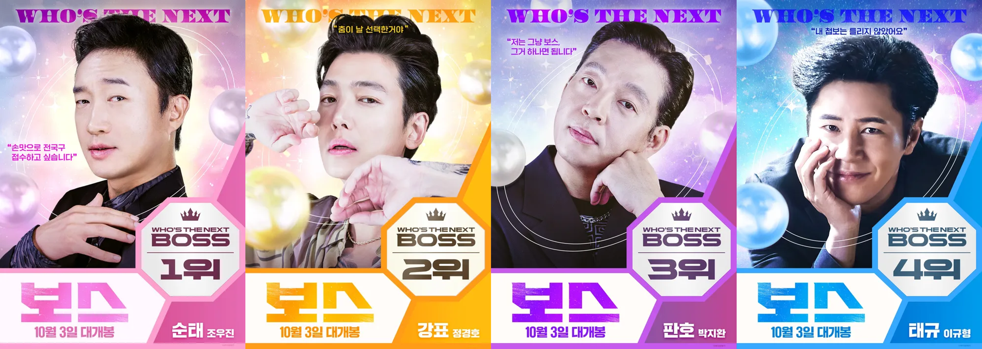 - 판호(박지환) – 유일하게 보스 자리를 간절히 원하는 인물. 허점과 야망이 뒤엉켜 코믹의 핵심 역할을 맡는다.
