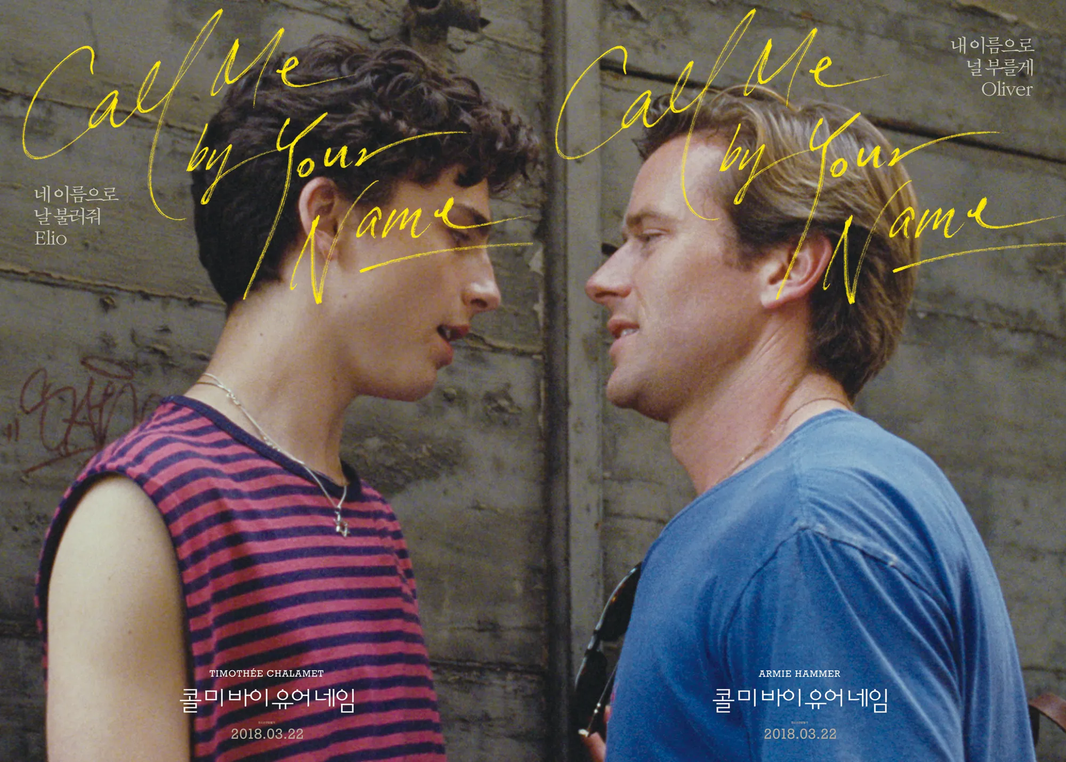 콜 미 바이 유어 네임은 안드레 애치먼의 동명 소설을 원작으로 한 영화이며 첫사랑의 감정, 성장통, 그리고 이별마저 찬란했던 한여름의 기록을 서정적으로 그린다.