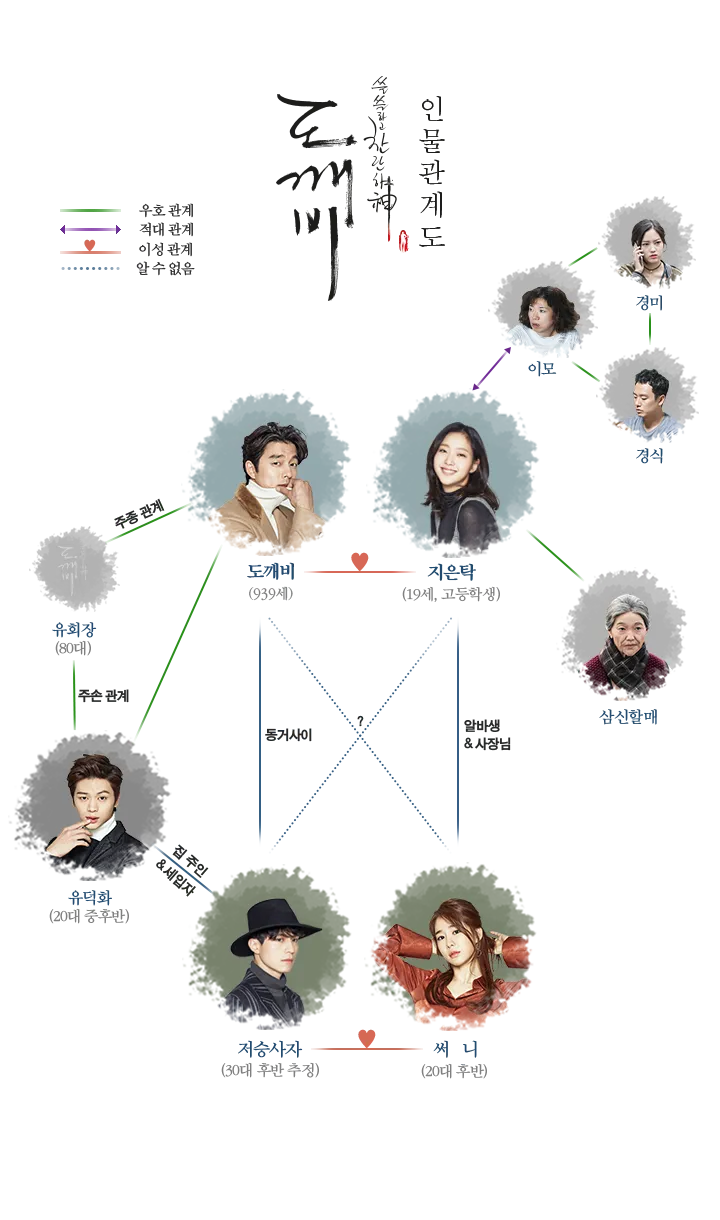 - 지은탁(김고은) – 도깨비 신부, “운명을 바꿀 열쇠”로 불멸의 존재에게 사랑과 끝을 선사할 비범한 소녀.