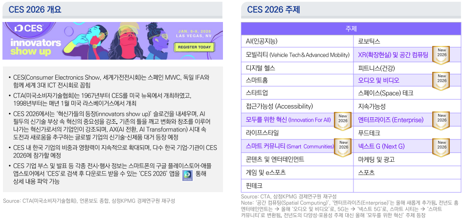 - AI·디지털 헬스·모빌리티·지속가능성이 CES 2026을 관통하는 네 가지 축이다.
